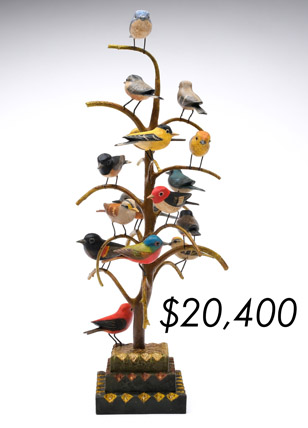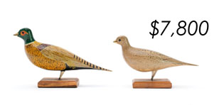 The sale featured the lifelong collections of Martin and Deborah Maloy, Bill and Alice Walsh, and Dean Hyde, as well as important additions from collectors around the country. With 11 items bringing over $100,000 and 103 over $10,000 the demand for important and rare waterfowl decoys remains strong.