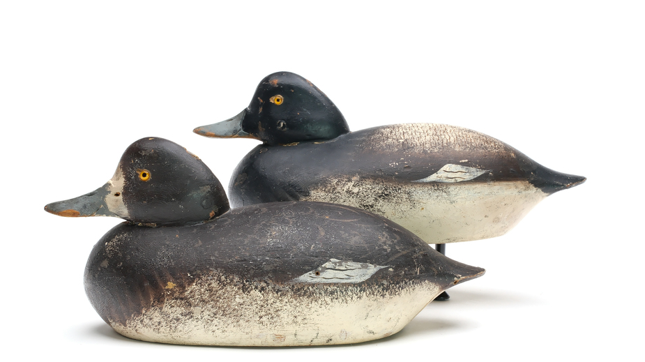 Pair of lowhead bluebills by the Mason Decoy Factory