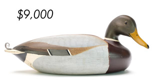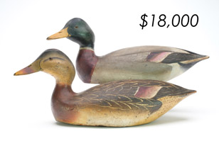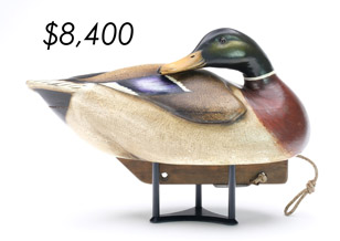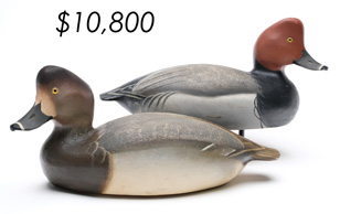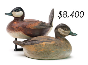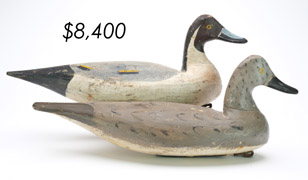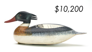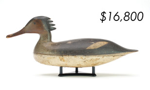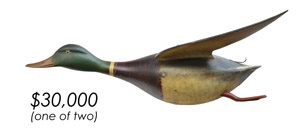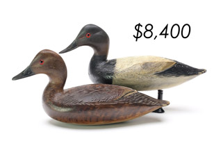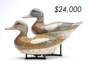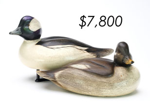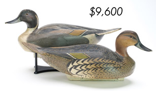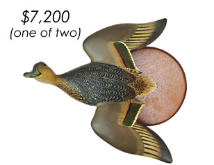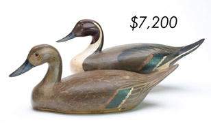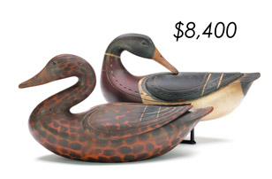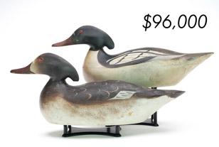 ![]() World Auction Record for Makers Beaver tail style pintail, Ward Brothers | ![]() Pair of American mergansers, John Dawson |