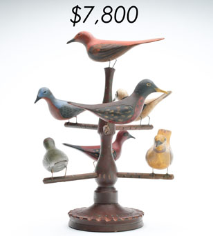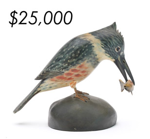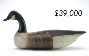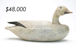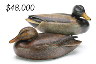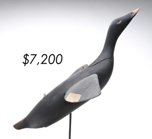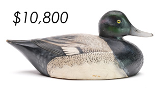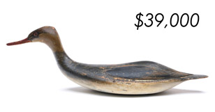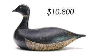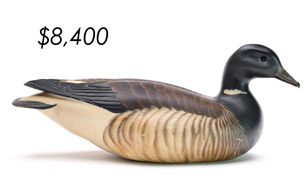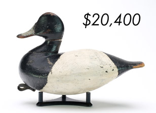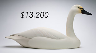 The sale featured the lifelong collections of Martin and Deborah Maloy, Bill and Alice Walsh, and Dean Hyde, as well as important additions from collectors around the country. With 11 items bringing over $100,000 and 103 over $10,000 the demand for important and rare waterfowl decoys remains strong.