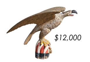 ![]() Pair of mergansers, Mason Decoy Factory ![]() Eagle banner, John Bellamy ![]() Wood duck, A. Elmer Crowell ![]() Patriotic carved wooden eagle ![]() Large carousel horse ![]() Snow goose, Enoch Reindahl ![]() Black bellied plover, John Dilley ![]() Merganser hen, Franklin Pierce Wright ![]() Canada goose, Harry M. Shourds ![]() Pair of hummingbirds, Frank Finney ![]() Golden plover, John Dilley ![]() Pair of flying mallards, Chauncey Wheeler ![]() Pair of canvasbacks, Ward Brothers ![]() Greenwing teal, Edward Cabot ![]() Kingfisher, A. Elmer Crowell ![]() Pair of widgeon, Charles Bergman ![]() Bufflehead, Mason Decoy Factory ![]() Bird tree, Frank Finney ![]() Merganser hen, A. Elmer Crowell ![]() Group of four flatties, A. Elmer Crowell ![]() Merganser hen, Harry M. Shourds ![]() Two sided trade sign, Oscar Peterson ![]() Oil on artist board, A. Elmer Crowell ![]() Curlew, Harry V. Shourds ![]() Pintail, Lloyd Sterling ![]() Black duck, Mason Decoy Factory ![]() Pintail, Ward Brothers ![]() Oil on canvas, Antonio Jacobsen ![]() Dowitcher, John Dilley ![]() Carved pilot eagle, circa 19th century ![]() Root head Canada goose, Ike O'Neil ![]() Decorative yellowthroat, Oliver Lawson ![]() Root head heron, Long Island ![]() Large curlew, New Jersey ![]() World Auction Record for Maker Pintail, Alvin Harris ![]() Patriotic folk art mirror, circa 1870s. ![]() Cedar black duck, Ward Brothers ![]() Yellowlegs, Harry V. Shourds ![]() 32" long striped bass, Josh Brewer ![]() Pair of redheads, Ward Brothers ![]() Canvasback, John English ![]() Fish weathervane, Fisk & Company ![]() Canada goose, Lloyd Tyler ![]() Canada goose, George O'Neil ![]() Blue heron, New Jersey ![]() Pair of pintails, Ward Brothers ![]() Mallard hen, William Quinn ![]() Feeding yellowlegs, Elisha Burr ![]() Mallard, Louis Rathmell ![]() Flying bluewing teal, Chauncey Wheeler ![]() Brant, Ward Brothers ![]() Mallard, A. Elmer Crowell ![]() Horse weathervane, Harris Factory ![]() Pintail, Ward Brothers ![]() Redhead, Alvirah Wright ![]() Pair of bluebills, Frank Buchner ![]() Ruddy duck, Jim Schmiedlin ![]() Bluebill, Eli Doughty ![]() Oil on linen, Ewoud de Groot ![]() Early bird tree, Frank Finney ![]() Pair of miniature pheasants, George Boyd ![]() Turned head brant, Chauncey Wheeler ![]() Feeding Canada goose, Samuel Soper ![]() Dowitcher, William Bowman ![]() Large carved wooden eagle ![]() Yellowlegs, Chipman family ![]() Black duck, Bud Tully ![]() Bluewing teal, Jim Schmiedlin ![]() Pair of 3/4 size flying pintails, Ward Brothers ![]() Oil on canvas, Lem Ward |