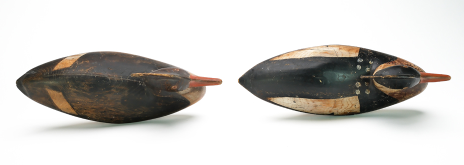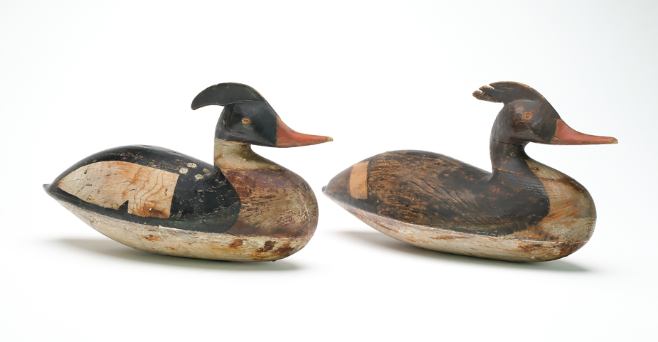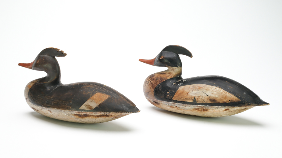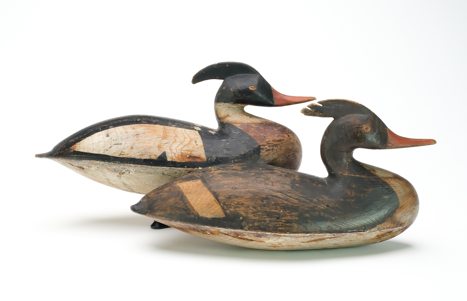 Pair of hollow carved mergansers from Cape May County, New Jersey. Ex David Rockefeller collection.